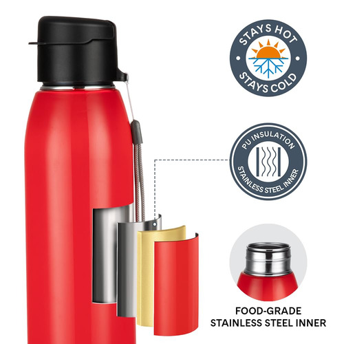 Borosil Airo Round PU Thermoware SS Bottle 650ml - Red