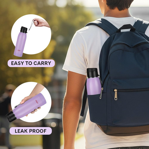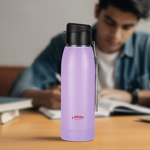 Stay hydrated in style with this Larah Airo Round PU Thermoware Bottle, 550 ml, Lavender, crafted for everyday convenience and lasting performance. The inner layer is made of N1 Grade stainless steel, ensuring rust-free and hygienic use, while the outer body is constructed from durable PP (polypropylene) material. The PU insulation maintains the temperature of your drink for longer hours, making it ideal for carrying water, juice, or other beverages to school, office, gym, or on the go. Lightweight and easy to carry, this bottle combines utility with a sleek thermoware design built to endure.