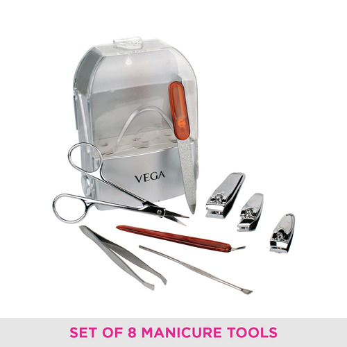 Vega - A one stop shop for Head To Toe Beauty care accessories. Vega manicure sets have all essential manicure tools – Small nail file, small nail clipper, large nail clipper, cuticle trimmer clipper, Cuticle scissors, tweezer (square tip), Cuticle trimmer with pusher,nail cleaner for a salon like manicure at home.