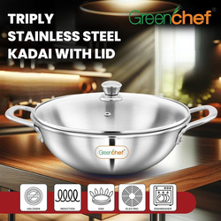 Greenchef Triply Kadai With Glass Lid 26cm - Fusion