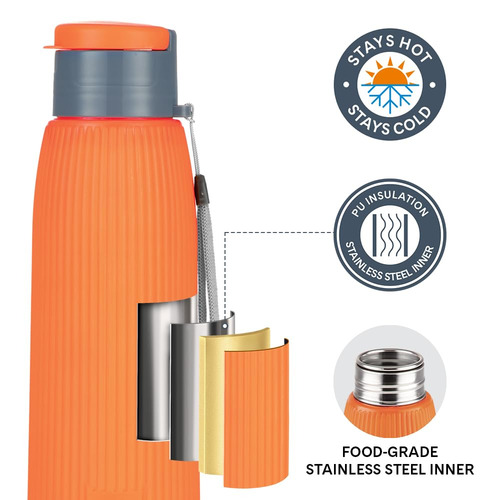 Borosil 700ml Lava Orange Stainless Steel Water Bottle
