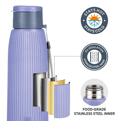 Borosil 700ml Lava Violet Stainless Steel Water Bottle